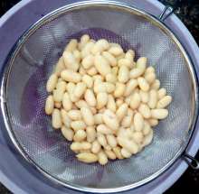 Консервированную фасоль откинуть на сито.