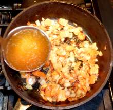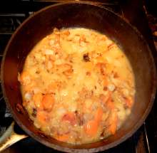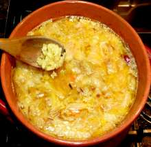 Перемешать, чтобы не было комков, прогреть, добавить половник бульона.