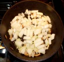 Жарить на малом огне. Дождаться, пока из сала вытопится жир.