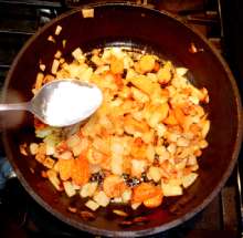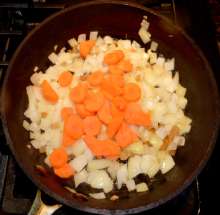 Когда лук станет прозрачным – добавить морковь, нарезанную шайбами.