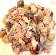 В оригинальном рецепте мясо отваривается с целой луковицей, морковью, лавровым листом и перцем горошком, но я обычно использую гораздо больше ингредиентов (см. ниже).