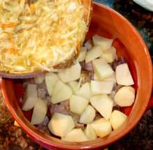 Мелко резать картофель нельзя – он распадётся при длительном томлении.