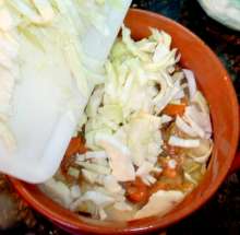 | Сочетание курицы, говядины, свинины, мясной бульон, сало, мука, чеснок. | Варится крепкий бульон из говядины, свинины, курицы, процеживается. В керамический (чугунный) горшок выкладываются слоями мясо из бульона, картофель, тушеная с маслом квашеная капуста, мучная заправка (поджаренный на сале лук, морковь, мука, бульон), свежая капуста. Ингредиенты заливаются процеженным бульном, щи томятся под крышкой в духовке 3-4 часа при периодическом снижении температуры, имитирующем остывающую русскую печь. По говности заправляются рубленным чесноком и зеленью. |