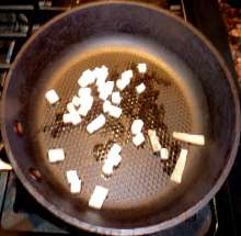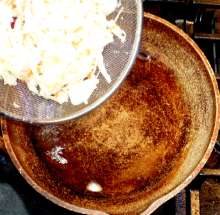 Жарить на малом огне. Дождаться, пока из сала вытопится жир.