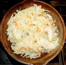 Квашеную капусту промыть, если слишком кислая, выложить в нагретую сковороду с растительным маслом.