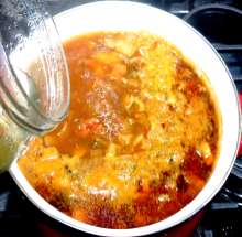 Выложить в кастрюлю. Довести до кипения, убавить огонь и варить 10-15 минут.