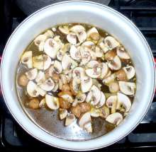 Бульон довести до кипения, добавить свежие грибы.