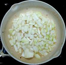 Поджарить лук до прозрачности.