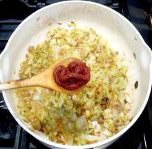 Добавить томатную пасту.