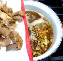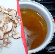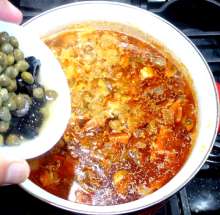 | Солёные и свежие грибы, копчёные свиные рёбра. | В процеженном мясном бульоне отвариваются свежие грибы, добавляются поджаренные копчености, луковая зажарка с солёными огурцами и томатом, а в конце варки - солёные грибы, маслины и каперсы. |
