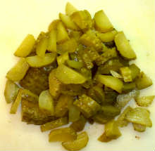 Подготовить соленые (маринованные) огурцы.