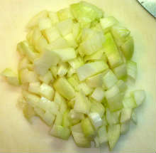 Лук порезать кубиками.