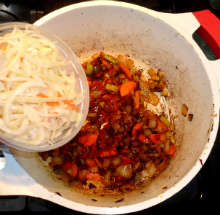 Если жидкости недостаточно для покрытия всех ингредиентов - долить бульоном.