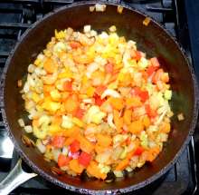 Поджарить овощи до легкой корочки, убрать со сковороды.