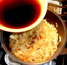 Если капуста очень кислая, промыть, откинуть на сито, оджать.