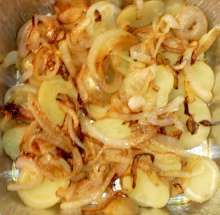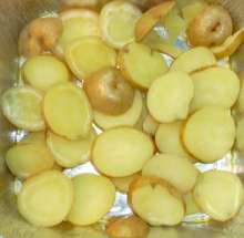 Картофель нарезать шайбами толщиной 5-7 мм.