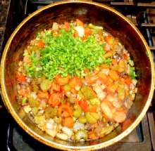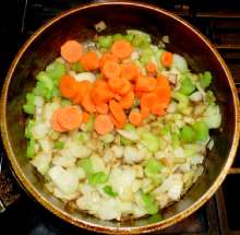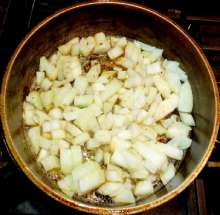 Жарить ингредиенты можно непосредственно в мультиварке, но я предпочитаю жарить их в толстостенной сковороде.