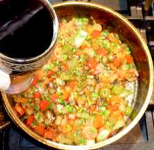 Тушить 5 минут, чтобы выпарился основной алкоголь.