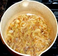 На дно формы для запекания налить луковую подливку.