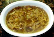 Колбаски с жареным луком в пивной подливке (Польская кухня)