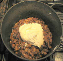 Добавить в казан сметану, перемешать.