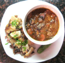 Многие рецепты рекомендуют, когда мясо будет готово - процедить соус, который получился при тушении, чтобы удалить из него разварившиеся овощи. Я не вижу в этом смысла - чего такую вкусноту выбрасывать?