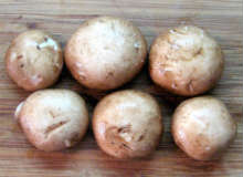 У грибов отрезать ножки, шляпки нарезать на крупные куски.