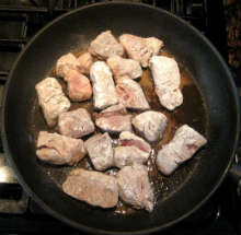Мясо нарезать порционными кусочками, как для гуляша (где-то 3х3 см.)