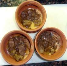 Я тушу мясо перед запеканием в горшочках всегда – слишком часто в гостях я не мог разжевать мясо, поданное в горшочках.