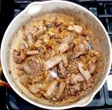 Мясо должно оставаться на луке несколько минут, чтобы низ кусочков запечатался и таким образом сократилось количество выделяемой мясом жидкости.
