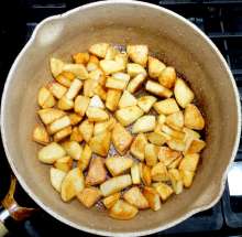Выложить картофель в нагретую сковороду с растительным маслом.