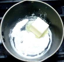 Тем временем приготовить соус. В сотейнике подсушить муку.