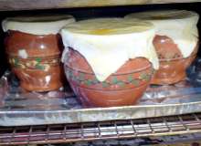 | Сухие грибы. | Предварительно обжаренные мясо, лук, отваренные грибы тушатся с томатом, добавляется обжаренный картофель, ингредиенты заливаются сметанным соусом с добавлением томата и томятся в горшочках, покрытых тестом. |