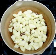 Выложить картофель в нагретую сковороду с растительным маслом.