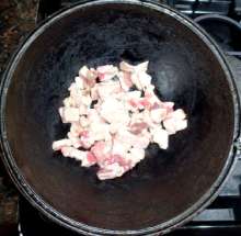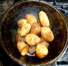 В этом блюде не используется мелкий картофель.Шкварки удалить из казана.