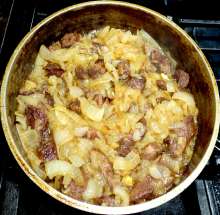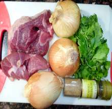 Изумительно нежное и ароматное мясо. Особенность - мясо тушится с луком без добавления воды. Аромат достигается за счет использования Сванской соли и большого количества кинзы. Готовится просто, испортить трудно.