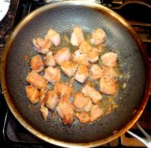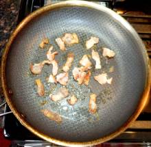 Жир, срезанный с мяса, выжарить до шкварок, убрать со сковороды.