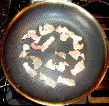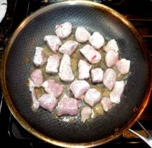 Жир, срезанный с мяса, выжарить до шкварок, убрать со сковороды.