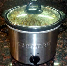 Если горшечек медленноварки недостаточно вместительный (как у меня) - вынуть шумовкой мясо.
