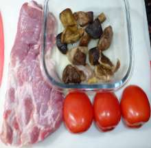 Подготовить мясо, грибы, помидоры.