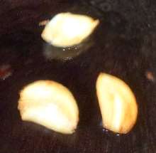Ароматизировать масло чесноком, поджарив хубчики до золотистой корочки и убрав их со сковороды.