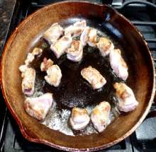 Выложить мясо в сковороду.