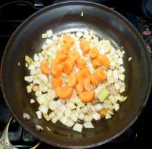 Когда лук станет прозрачным - добавить к нему морковь.