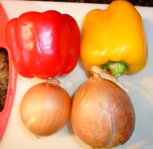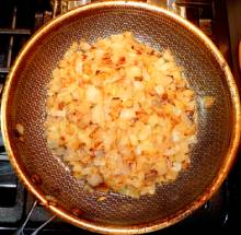 В оригинальном рецепте перец жарится вместе с луком, но они имеют разное время готовности, поэтому я предпочитаю жарить их поотдельности.