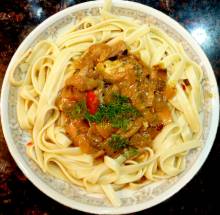 Сладкий перец, паприка, мука. Готовится соус из поджаренных лука и сладкого перца, остатков жареной (варёной) курицы с куриным бульоном и паприкой, заправляется смесью сметаны и муки. Подается с пастой или пюре.
