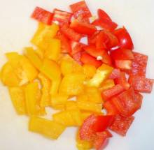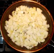 В оригинальном рецепте перец жарится вместе с луком, но они имеют разное время готовности, поэтому я предпочитаю жарить их поотдельности.