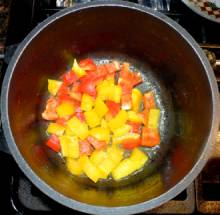 Выложить перец в толстостенуую кастрюлю с растительным маслом.