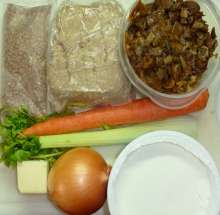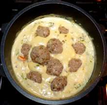 | Гречка | Готовится фарш из куриного мяса, гречки, отваренной до полуготовности, сырого лука и специй. Из фарша формируются тефтели и тушатся в сметанном соусе (сметана + морковь + сельдерей + лук + мука + зелень). |