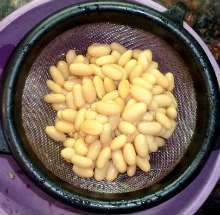 Фасоль откинуть на сито (жидкость не выливать).