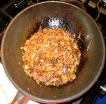 Поджарить грибы с луком (см.как), остудить.